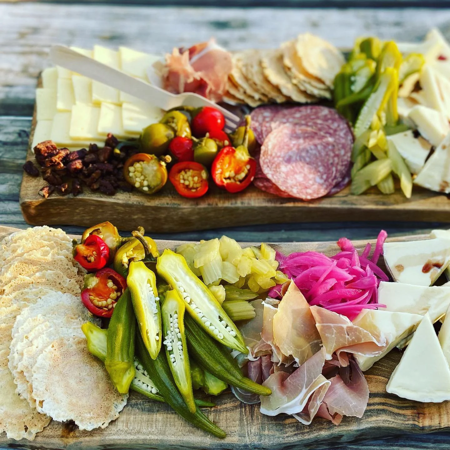 Classic boards featuring meats, cheeses, pates, spreads, nuts, etc.